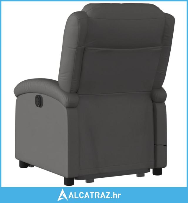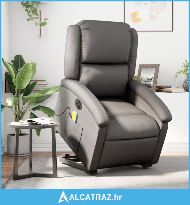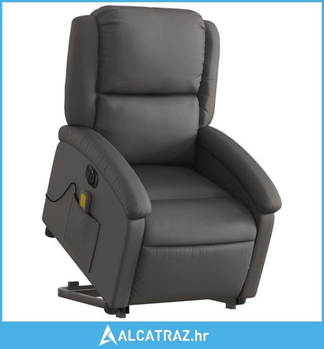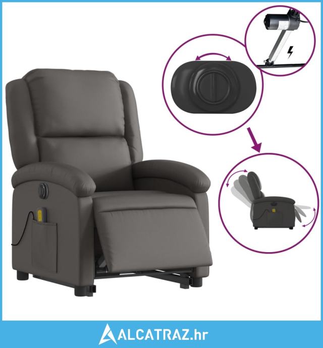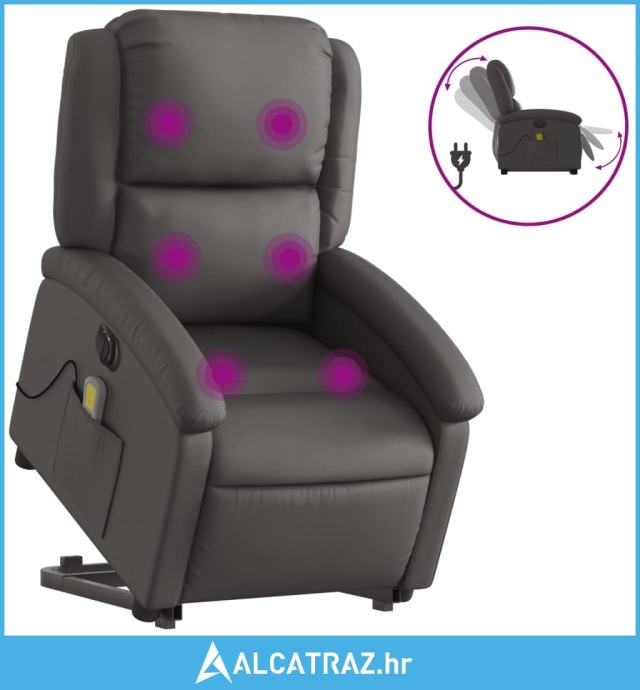 Električni masažni naslonjač na podizanje od prave kože sivi - NOVO