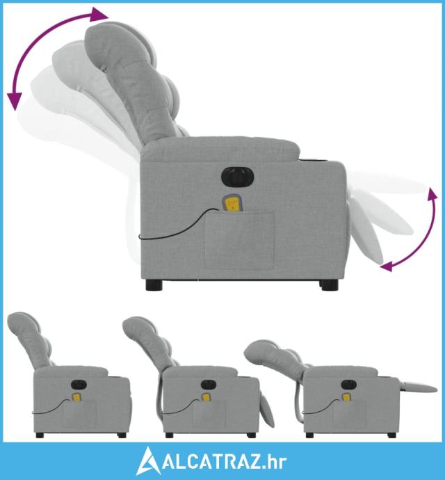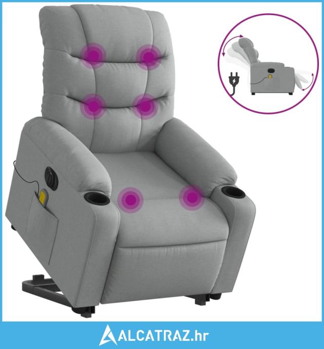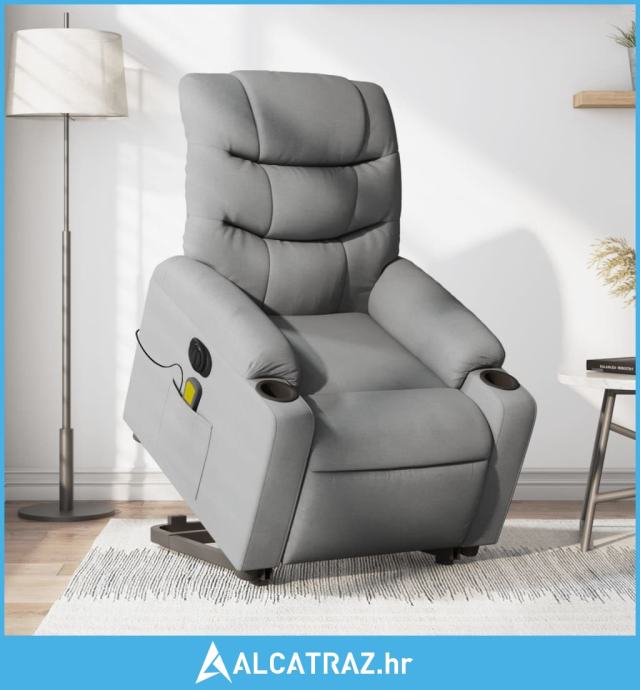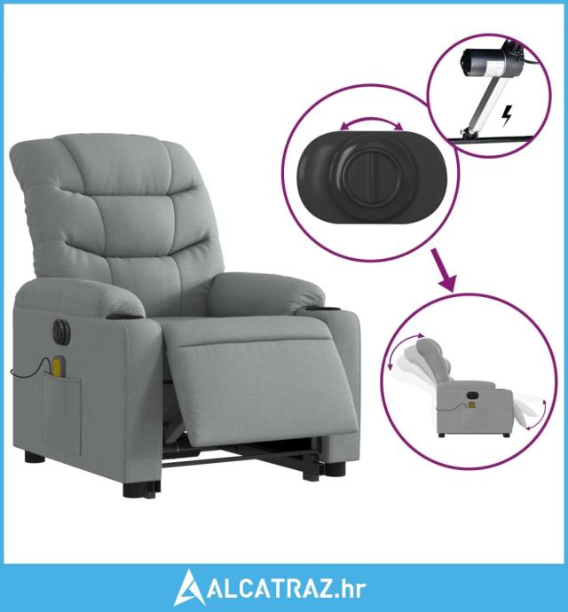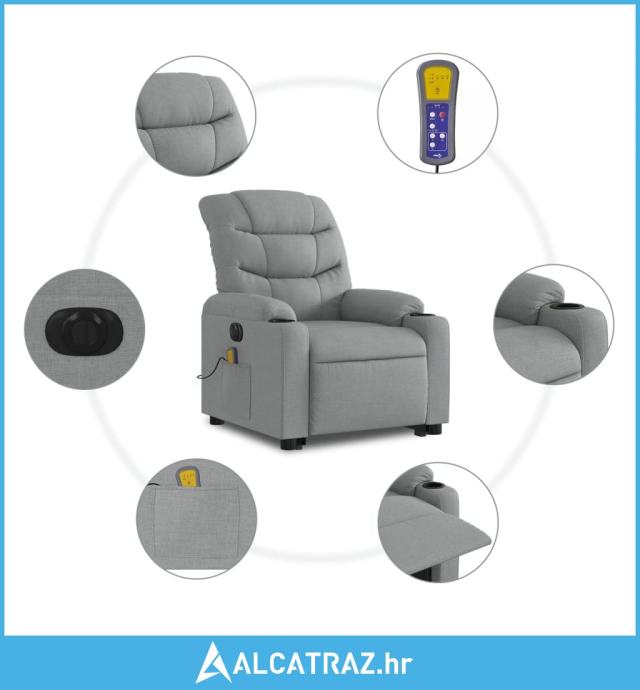 Električni masažni naslonjač na podizanje tkanina svjetlosivi - NOVO