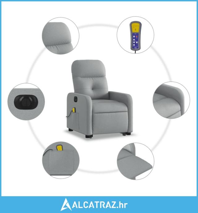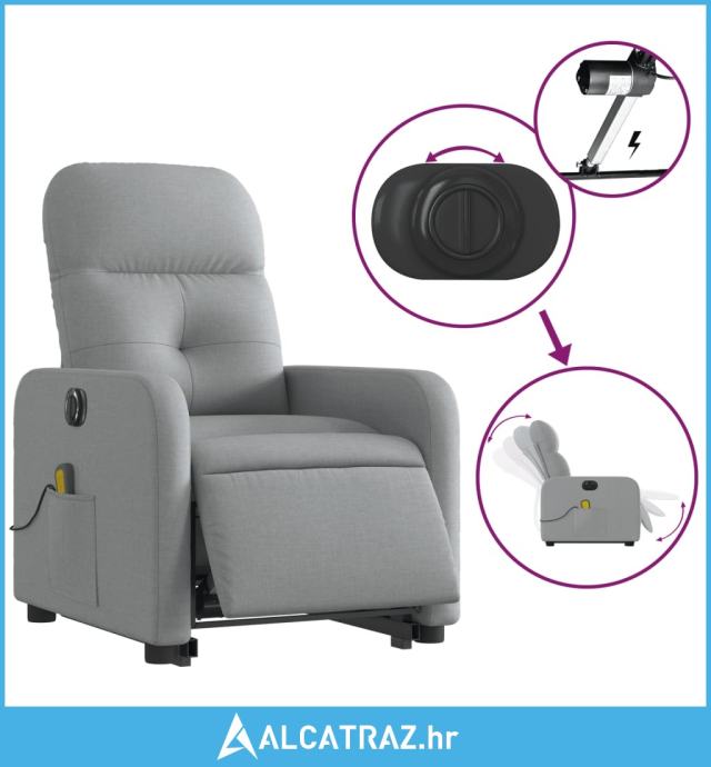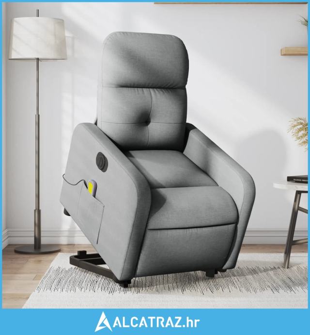 Električni masažni naslonjač na podizanje tkanina svjetlosivi - NOVO