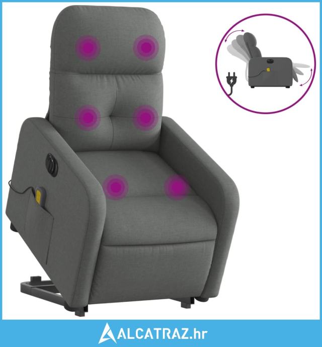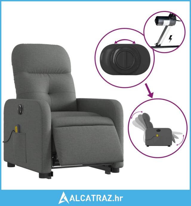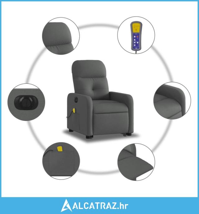 Električni masažni naslonjač na podizanje od tkanine tamnosivi - NOVO