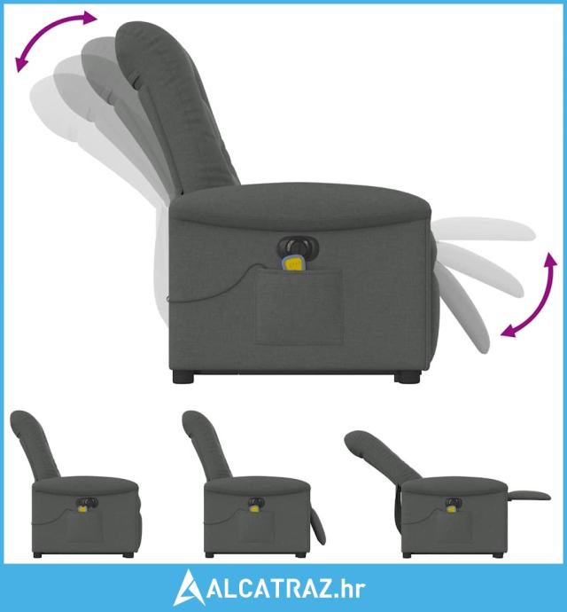 Električni masažni naslonjač na podizanje od tkanine tamnosivi - NOVO