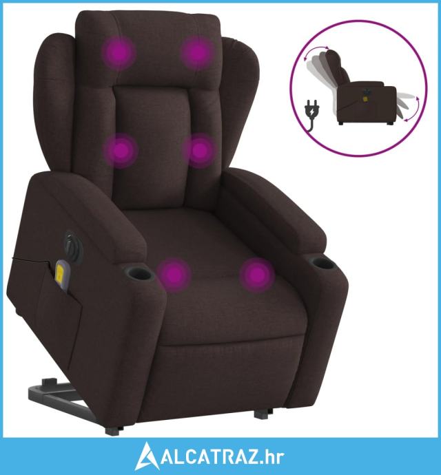 Električni masažni naslonjač na podizanje od tkanine tamnosmeđi - NOVO
