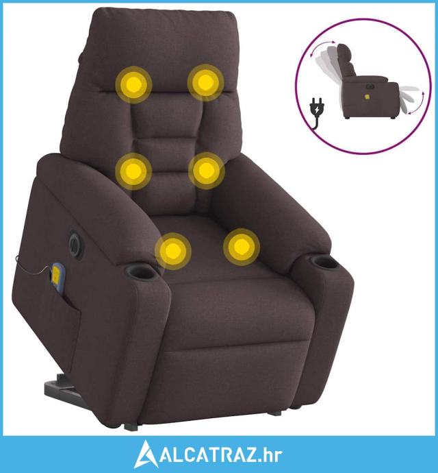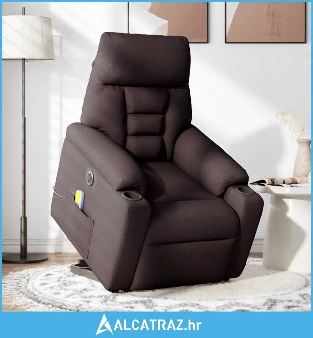 Električni masažni naslonjač na podizanje od tkanine tamnosmeđi - NOVO