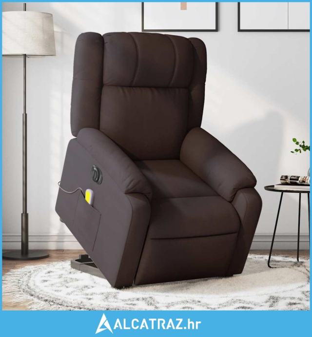 Električni masažni naslonjač na podizanje od tkanine tamnosmeđi - NOVO
