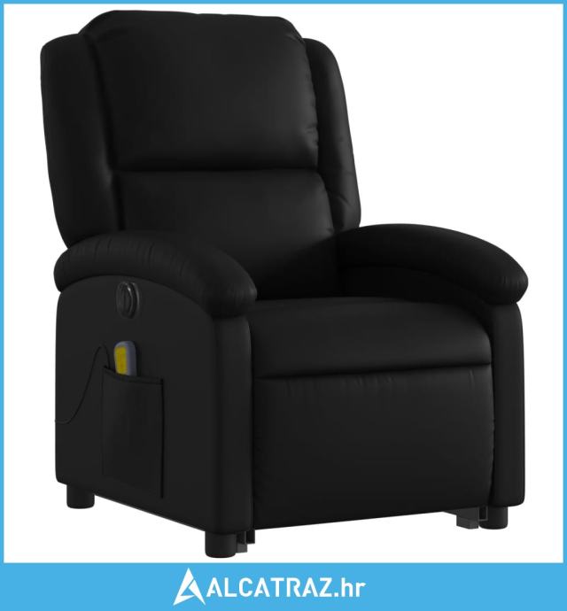 Električni masažni naslonjač na podizanje od umjetne kože crni - NOVO