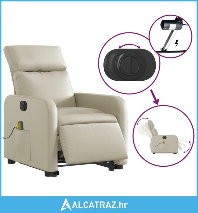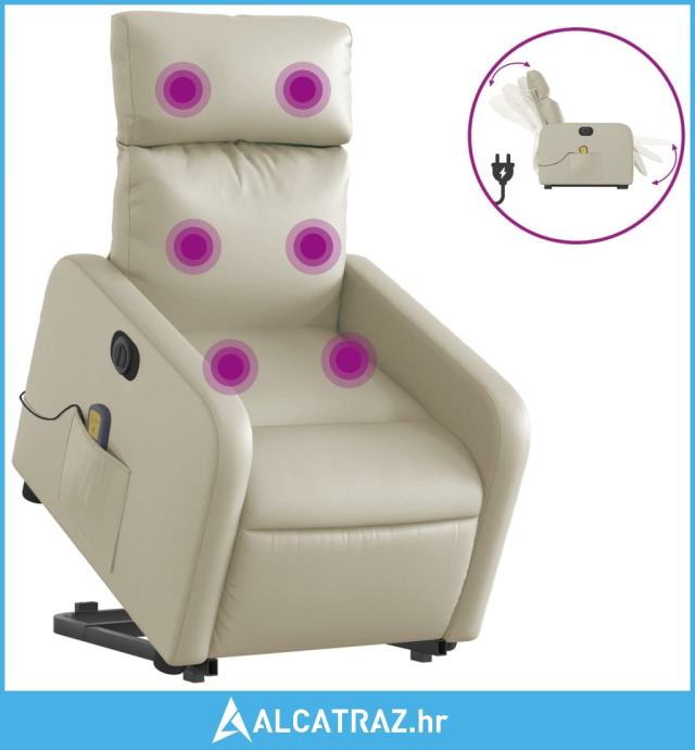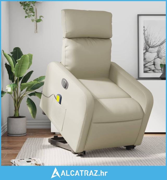 Električni masažni naslonjač na podizanje od umjetne kože krem - NOVO