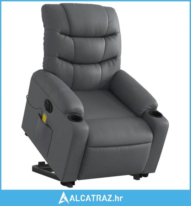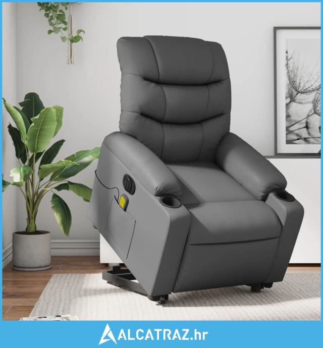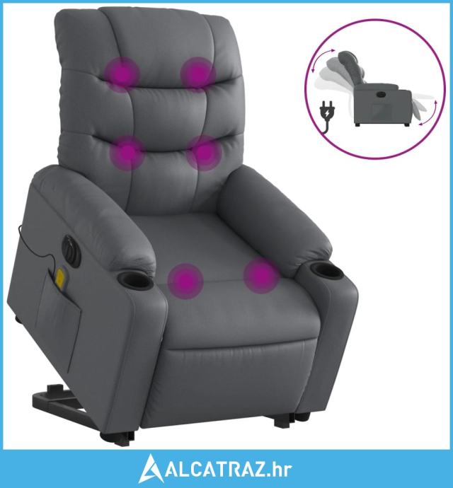Električni masažni naslonjač na podizanje od umjetne kože siva - NOVO