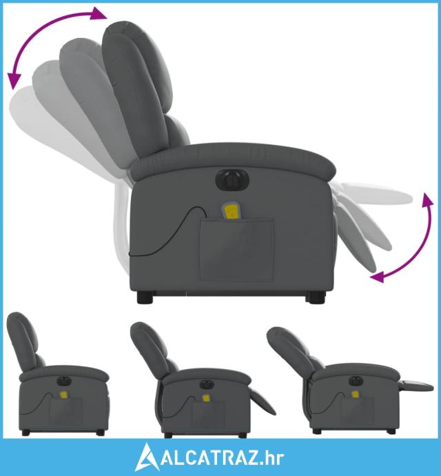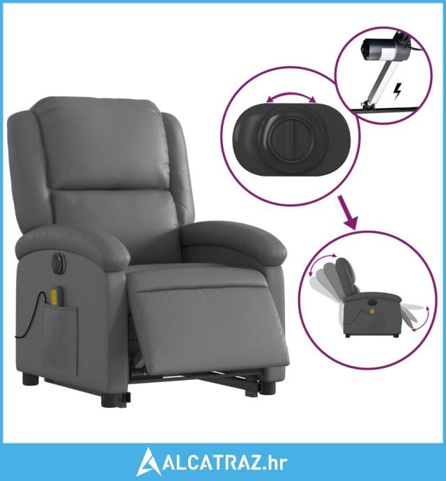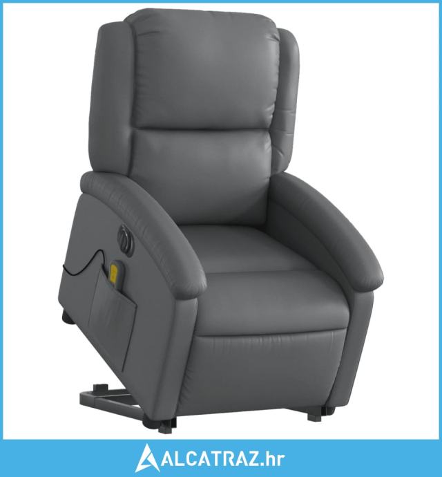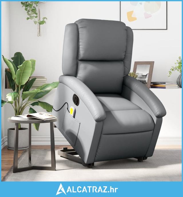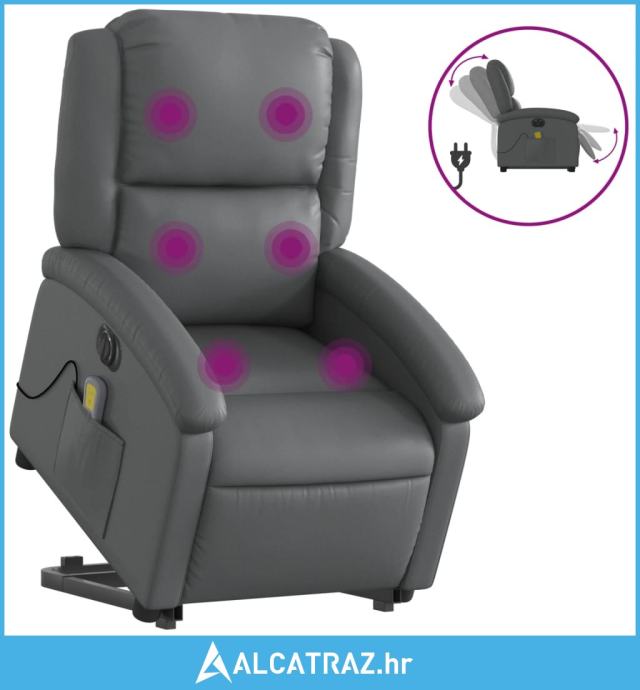 Električni masažni naslonjač na podizanje od umjetne kože siva - NOVO