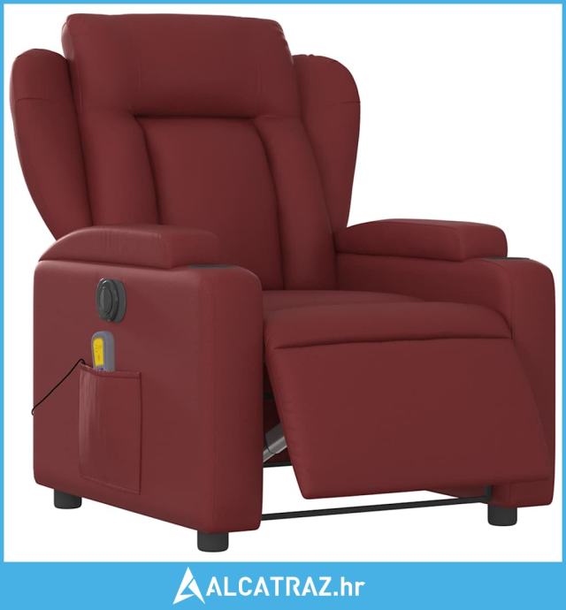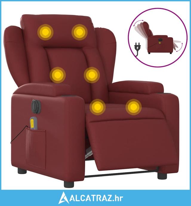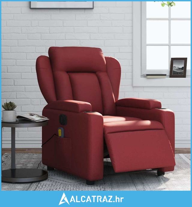 Električni masažni naslonjač od umjetne kože crvena boja vina - NOVO