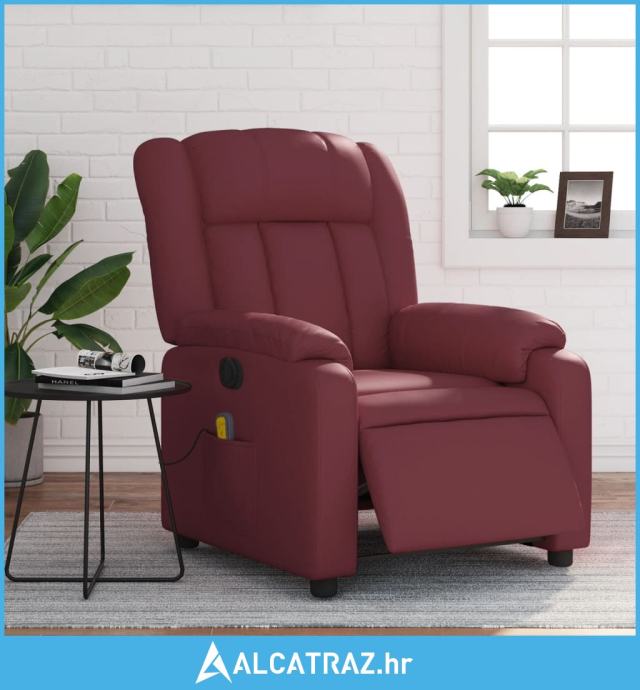 Električni masažni naslonjač od umjetne kože crvena boja vina - NOVO