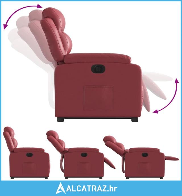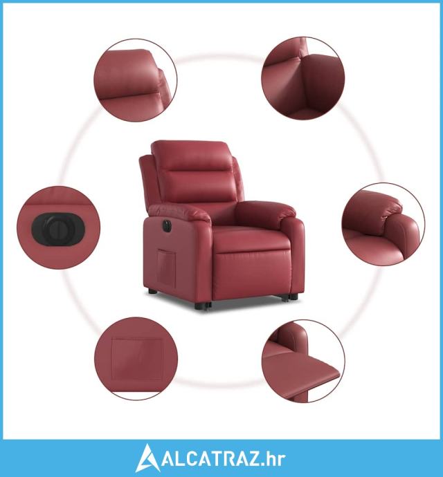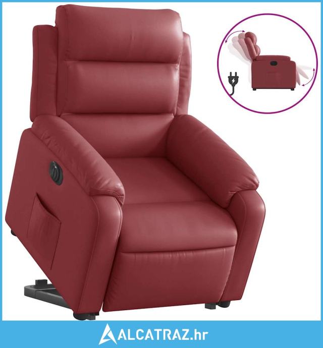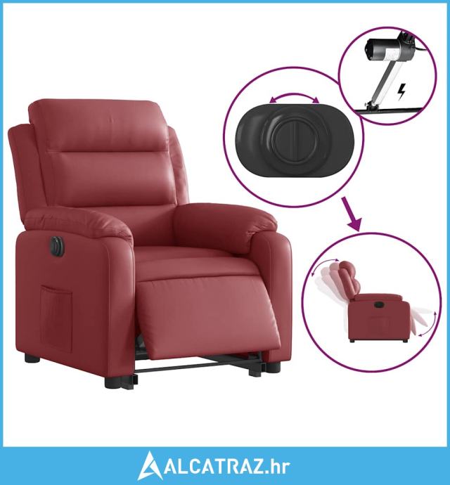 Električni naslonjač na podizanje umjetna koža crvena boja vina - NOVO