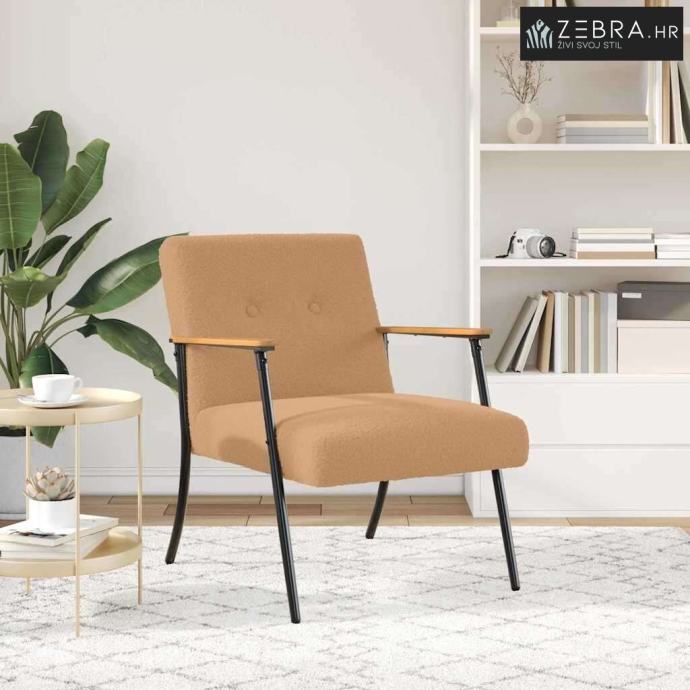 Baršunasti materijal: Fotelja ima ugodnu teksturu koja izgleda kao vunasta tkanina, dodajući luksuz i udobnost.