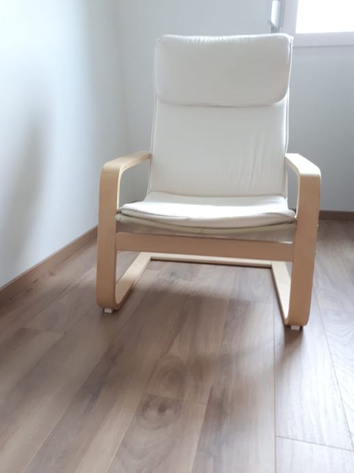 Prodaje se fotelja kombinacije natur drvenih ručki i bijelog jastuka. Fotelja je kupljena u Ikei prije godinu dana. Dimenzije proizvoda su: Širina: 67 cm Dubina: 85 cm Visina: 96 cm Širina sjedišta: 55 cm Dubina sjedišta: 50 cm Visina sjedišta: 37 cm. Vrlo je udobna. Prodaje se zbog renovacije stana. Hitno!!