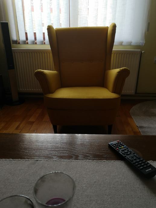 Na prodaju preljepa žuta fotelja sa fotografija koja je praktički kao nova.