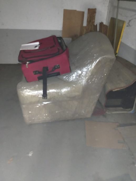 Fotelja je spakirana u više slojeva najlona, kofer je gotovo nov, dječji bicikl solidno stanje