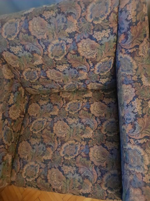 Prodajem starovinsku kvalitetnu fotelju na kotačiće od originalnog platna, cvjetnog uzorka u dobrom stanju bez oštečenja
