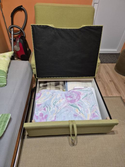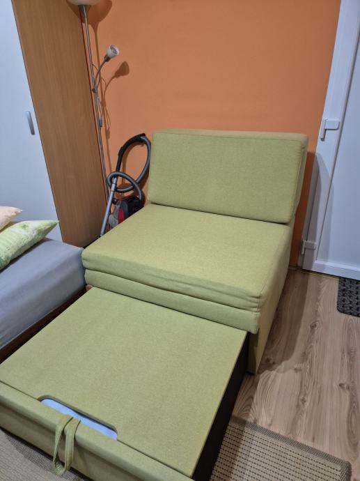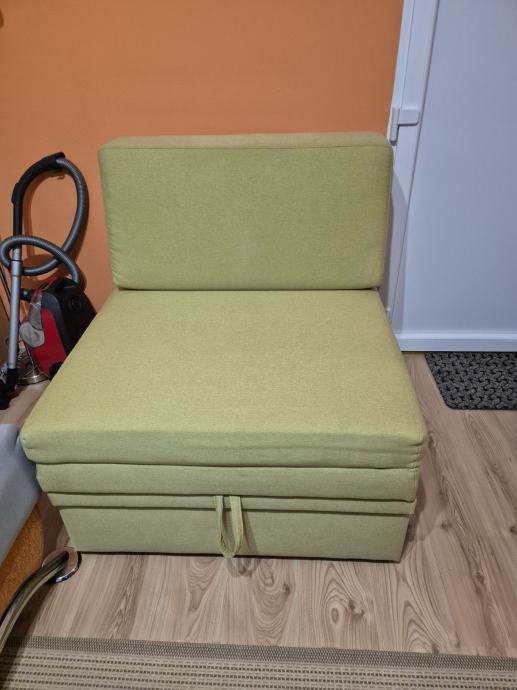 Prodajem fotelju, ujedno I ležaj za spavanje,kada se razvuče, sa sandukom za posteljinu, dim.90x90,razvučen 190x90x42 cm,u odličnom stanju,kao nov,nekoristen,samo stoji. Cijena 150 eu