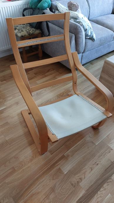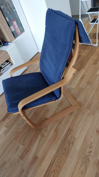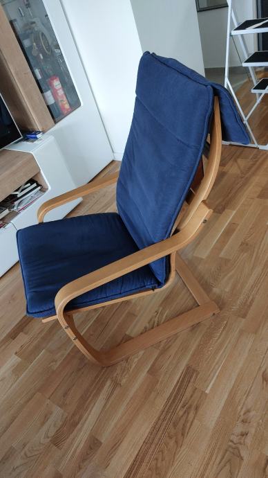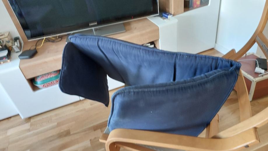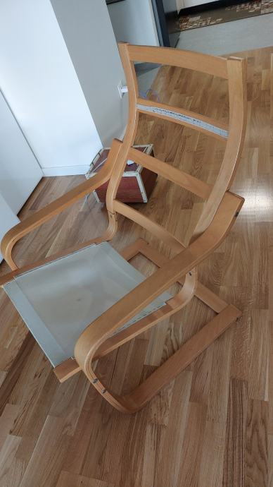 Fotelja sa opružnom drvenom konstrukcijom i zaobljenim naslonom za leđa,vrlo malo korištena,prodajem zbog selidbe.