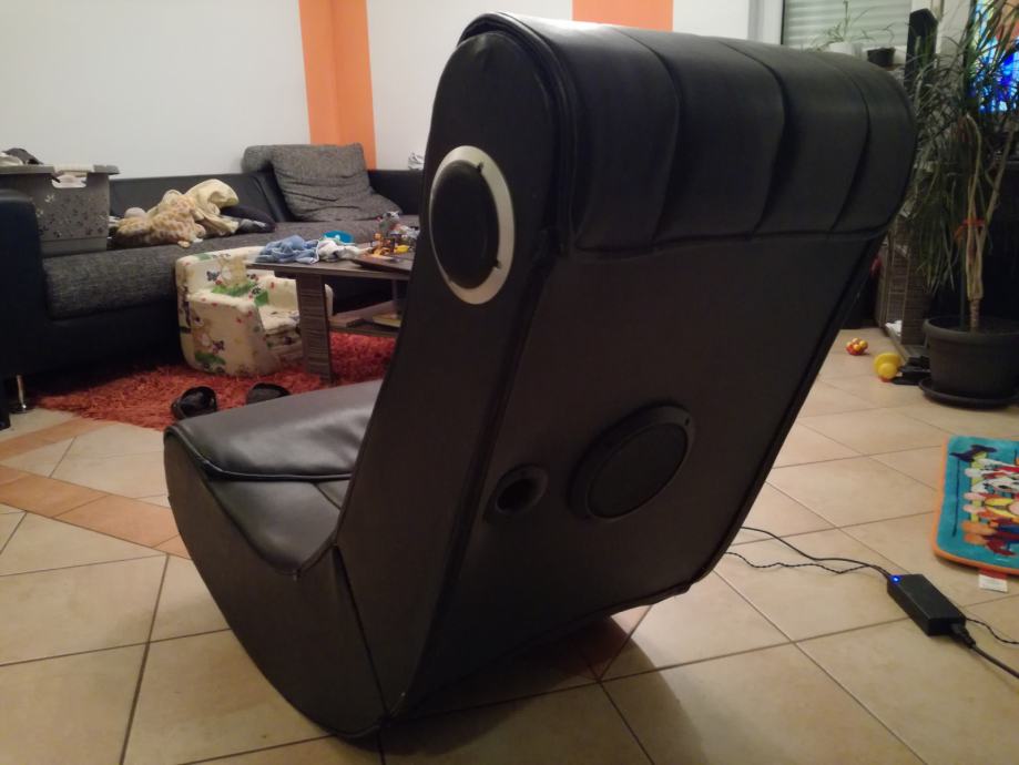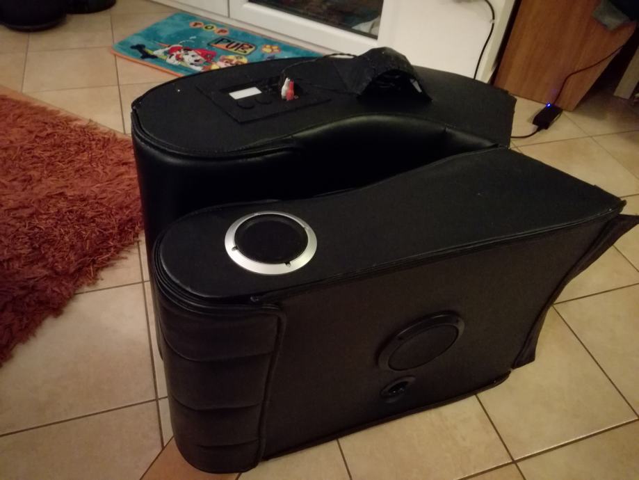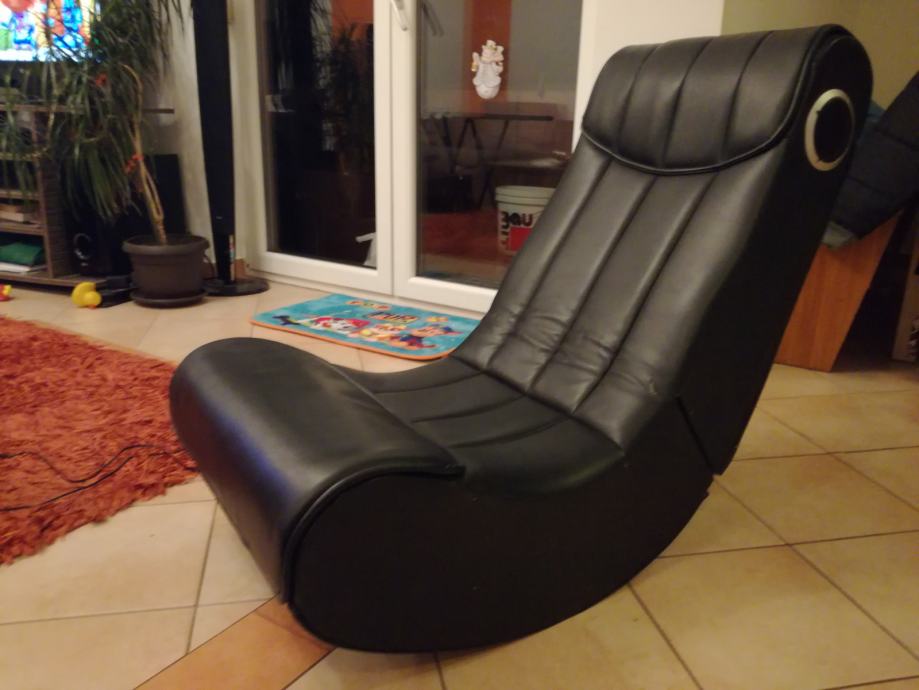 Fotelja za ljuljanje sa zvucnikom i adapterom, na sklapanje. U odlicnom stanju. Malo koristena.
