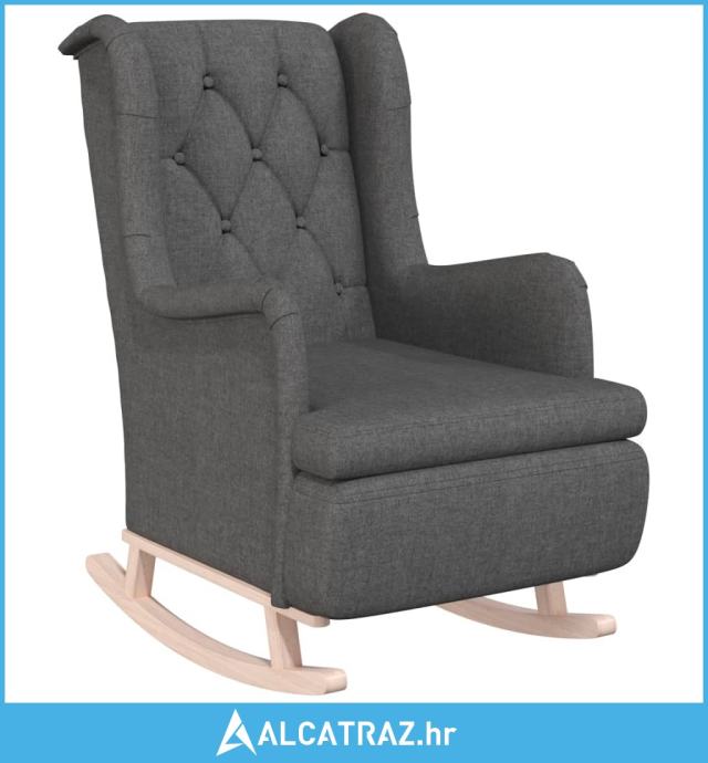 Fotelja s nogama za ljuljanje od kaučukovca tamnosiva tkanina - NOVO