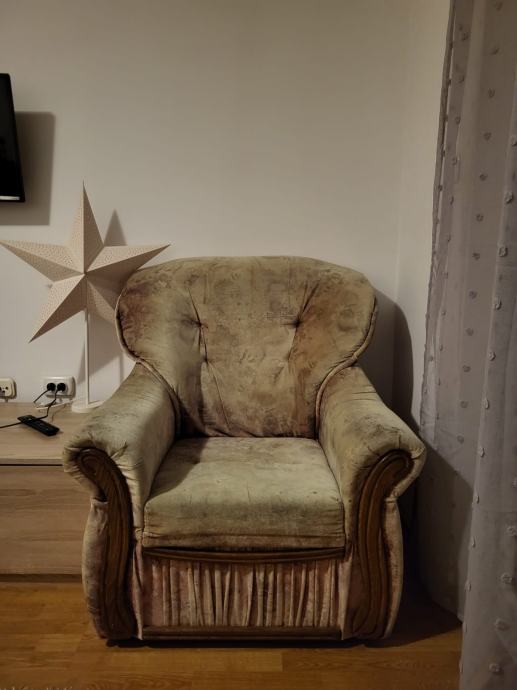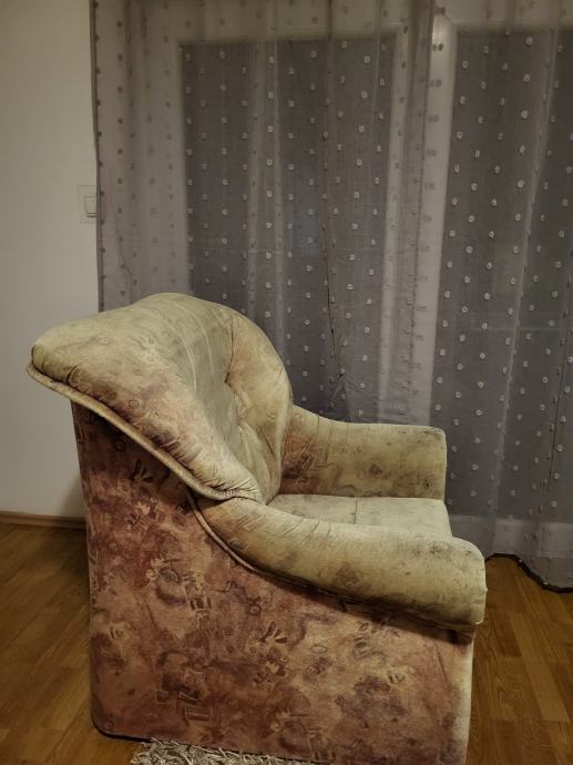 Fotelja bez oštećenja ali izblijedjela zbog položaja uz balkonska vrata.