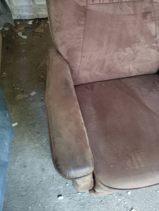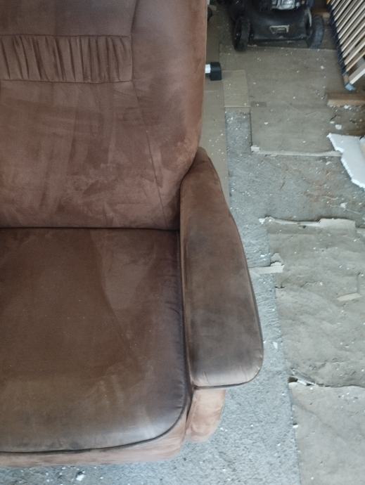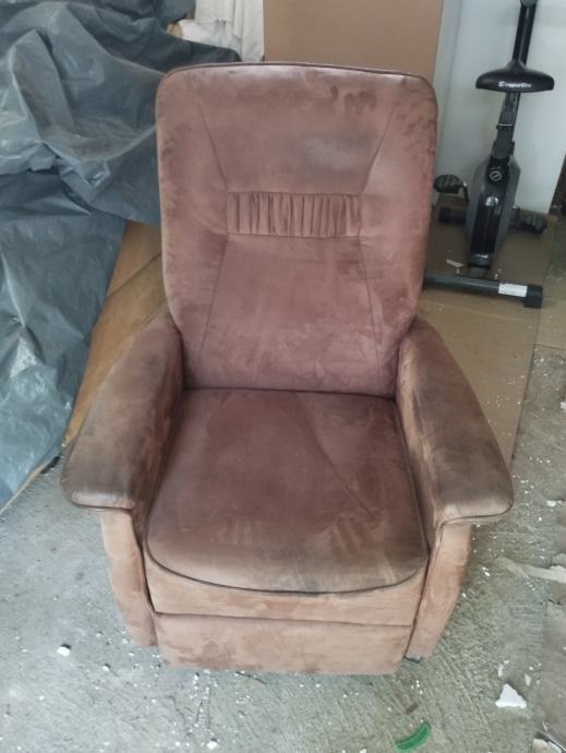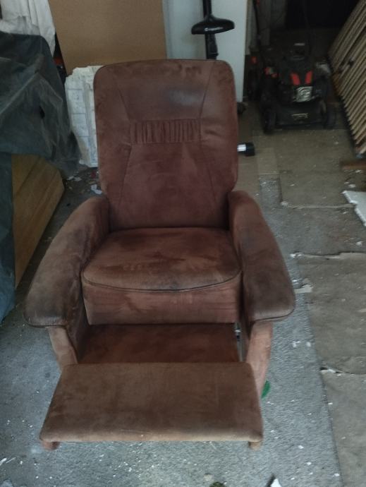 Fotelja na razvlačenje.Tamno smeđa ima kotačiče sve ispravno radi.dimenzije du 80 cm širine naslon visok 100 cm.