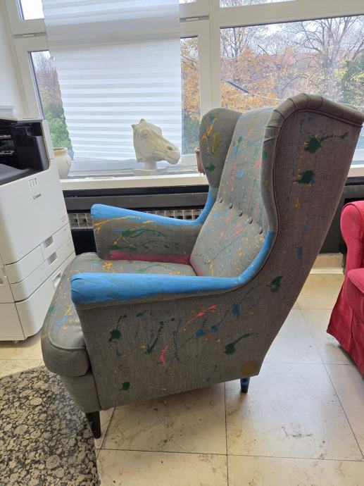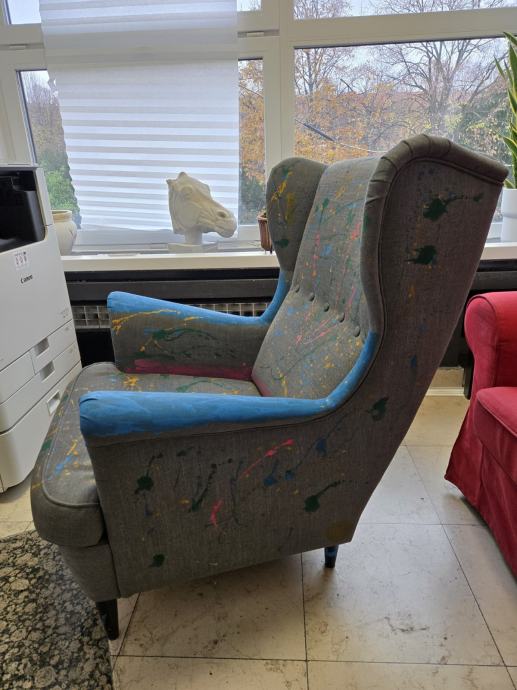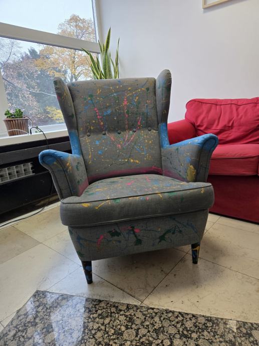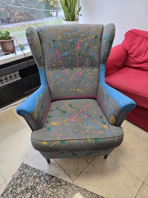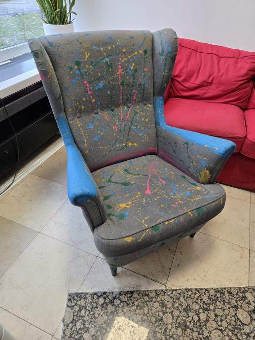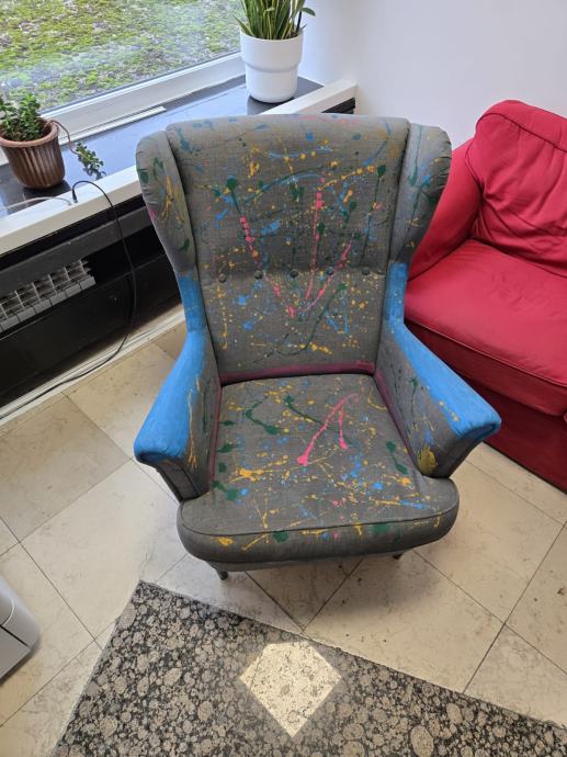 Prodajem art fotelju ručno oslikanu akrilnim bojama, boja je postojana, vrlo jedinstvena