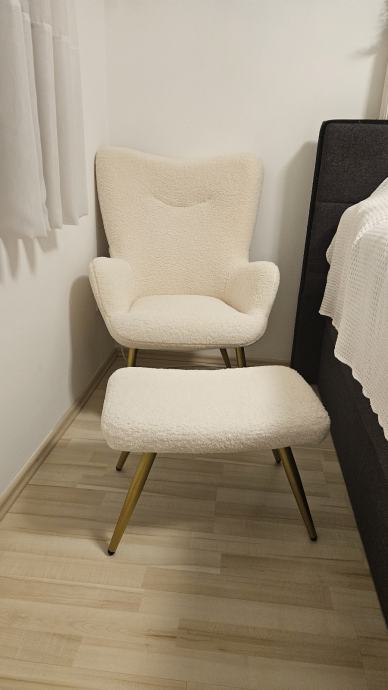 Moderna "Teddy" fotelja s tabureom – Kao nova!
