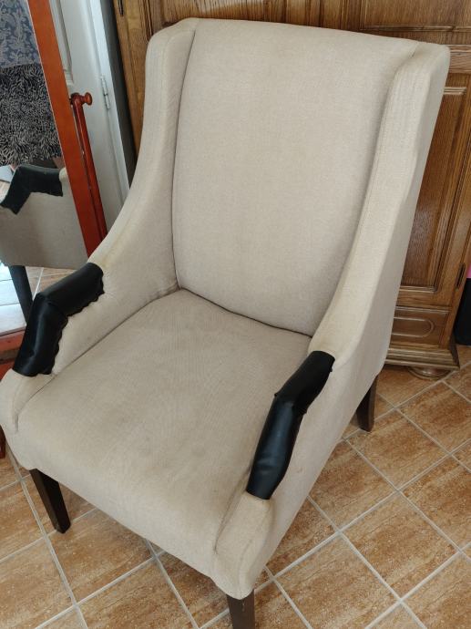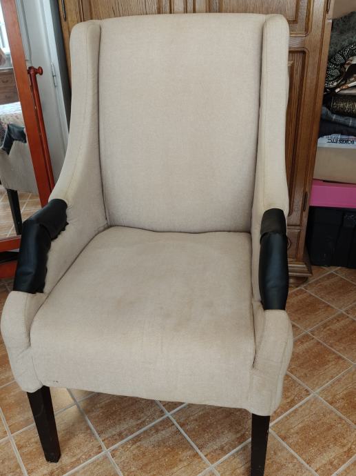 Udobna fotelja za prodaju, pristaje u interijer, možete je po želji i potrebi tapecirati, iz tog razloga je prilagođena cijena