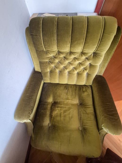 Prodajem fotelju presvučenu zelenom baršunastom tkaninom. Radi se o klasičnom modelu retro dizajna koji dolazi u maslinasto zelenoj boji.