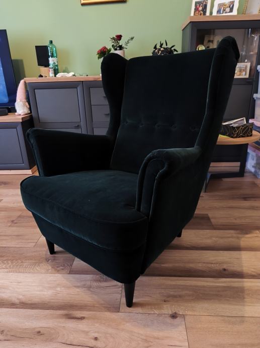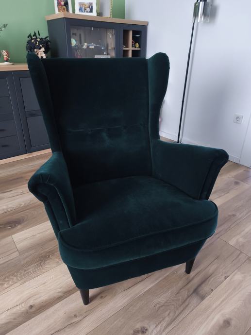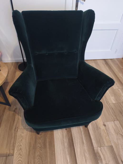 Prodajem fotelju tamno zelene boje,kupljena u IKEA (https://www.ikea.com/hr/hr/p/strandmon-naslonjac-djuparp-tamno-zelena-80359844/)