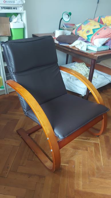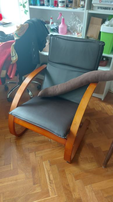 Udobna fotelja koja se lagano njiše, drevni okvir, eko koža.