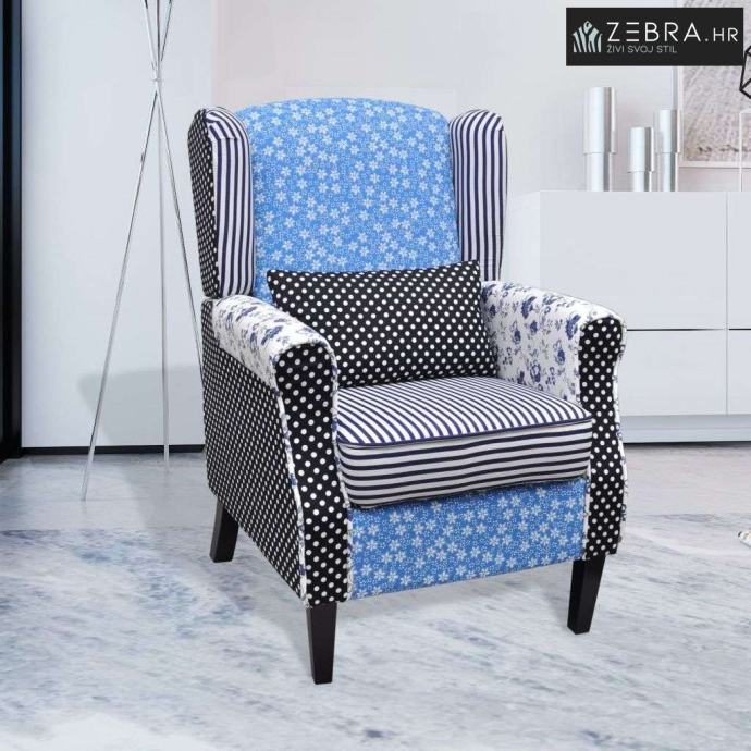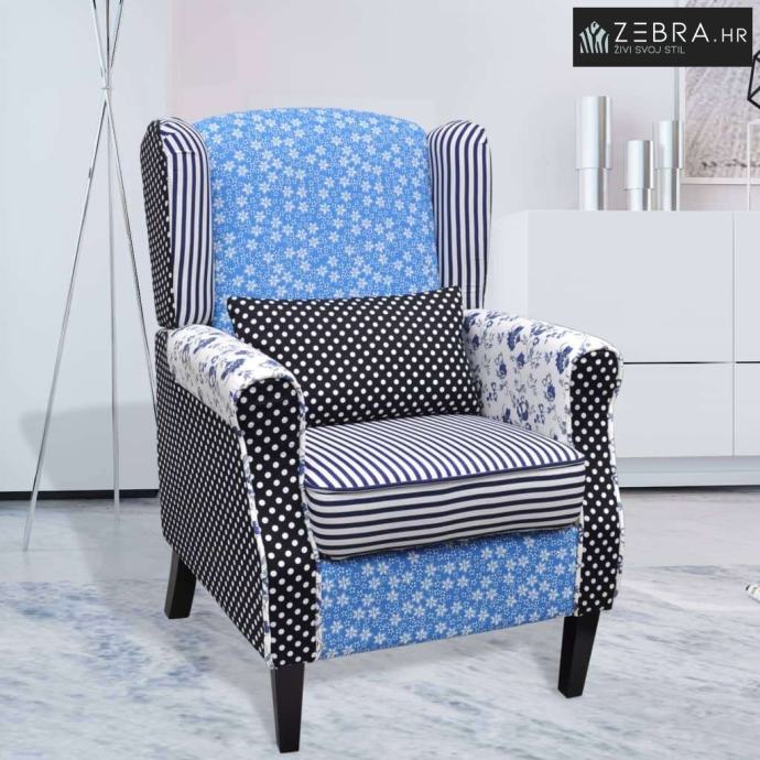 Ova fotelja u patchwork stilu odlična je kombinacija stilskog dizajna i funkcionalnosti.