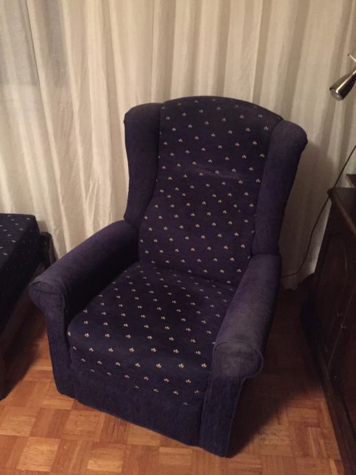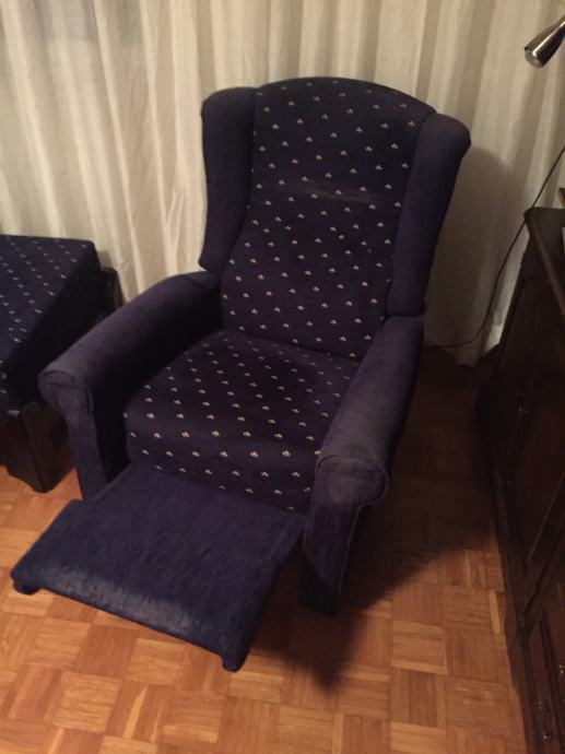 Prodajem fotelju plave boje s naslonom za noge. Fotelja se može razvuči iz sjedečeg položaja u poluležeči s naslonom za noge.