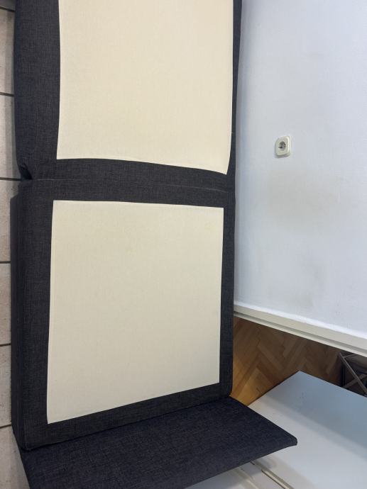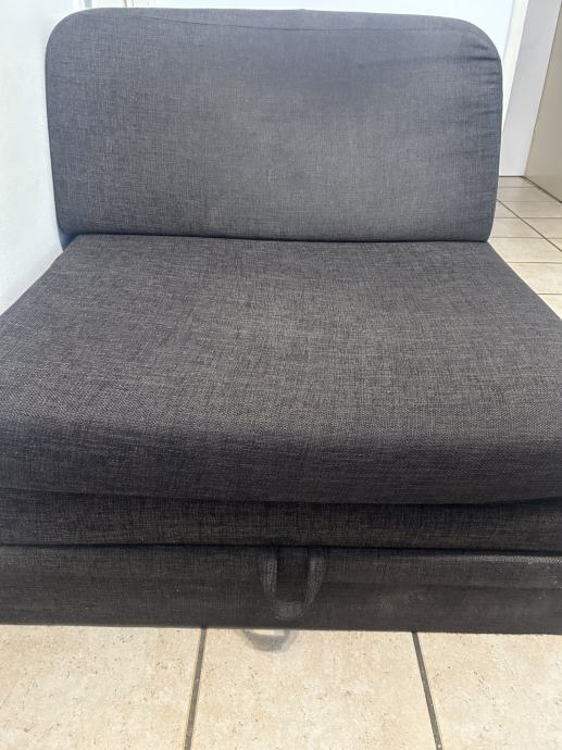 Rabljena fotelja s mogućnosti razvlačenja. Dolazi s naslonom i ima spremnik za ostavu.
