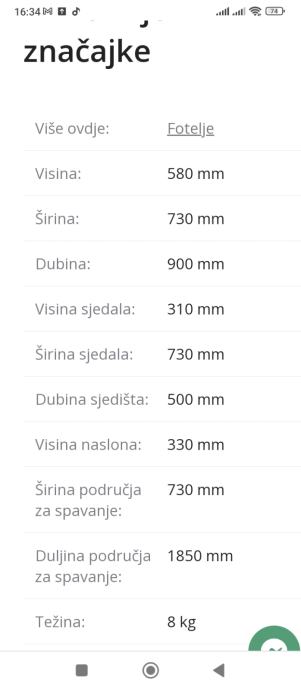 Fotelja s funkcijom za spavanje. Kao nova nikad korištena, kupljenja nedavno ali na kraju nema potrebe a zbog manjka prostora je na prodaju.