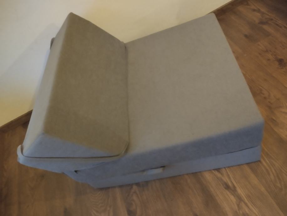 Dimenzije su na slikama. Moguće ju postaviti u tri varijante kao fotelja, kao počivaljka za odmor, kao madrac za prespavati. Ugodna i mekana a dovoljno tvrda da se ne propada prilikom sjedenja. Navlaka se može skidati i prati. Lako se rastvara te prenosi. Nalazi se u Puli.