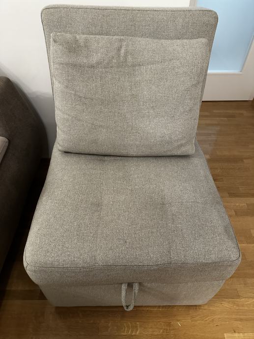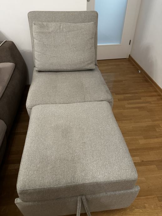 Fotelja koja se razvlači za spavanje, nije korištena kao nova .Dimenzije : dužina 900 cm širina 700 cm u razvučenom stanju dužina je 185 cm.