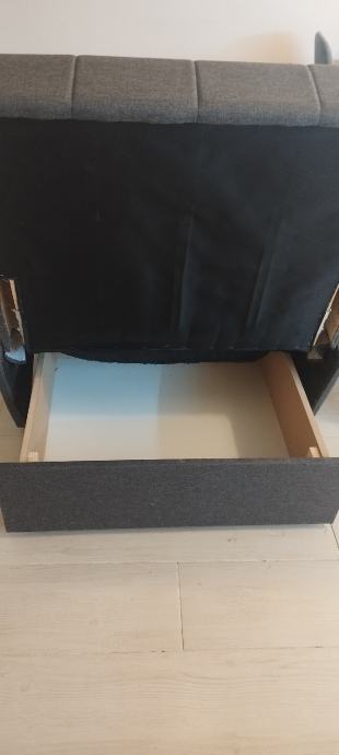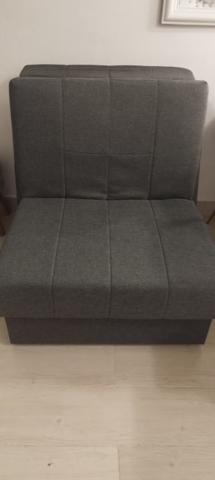Prodajem fotelju na razvlačenje, kao nova. Od prvoga dana prekrivena niti jedne fleke na sebi nema. Mjesto za pohranu stvari( sanduk) Dimenzije 198duljina ( u lezecem polozaju) sirina 87cm.