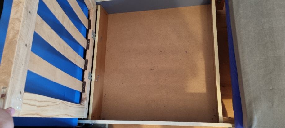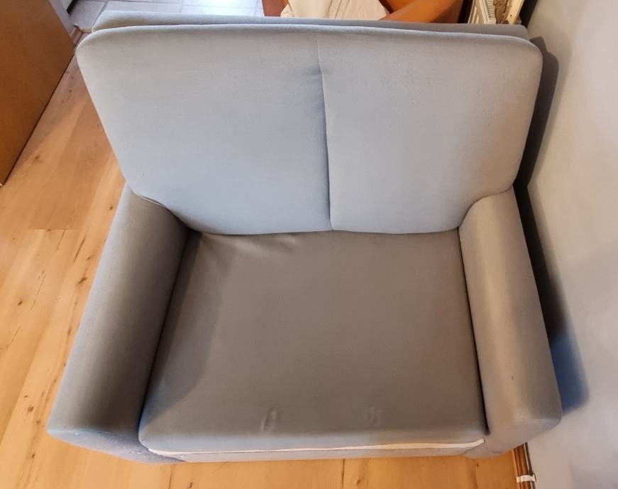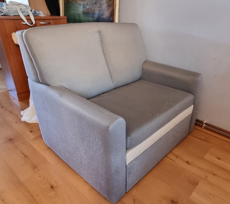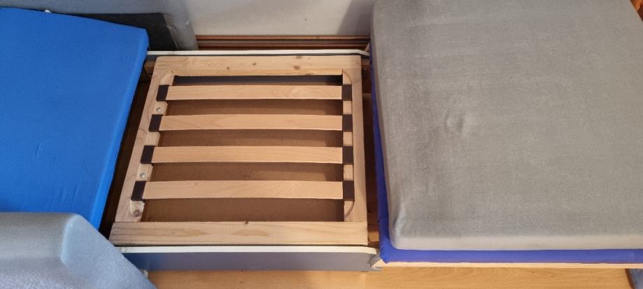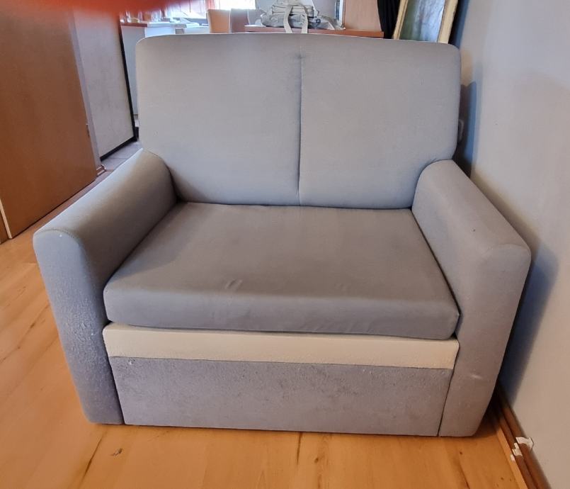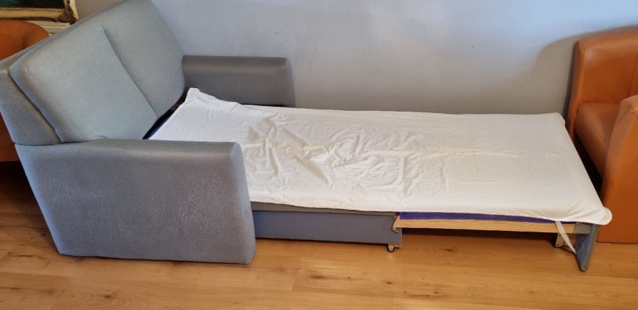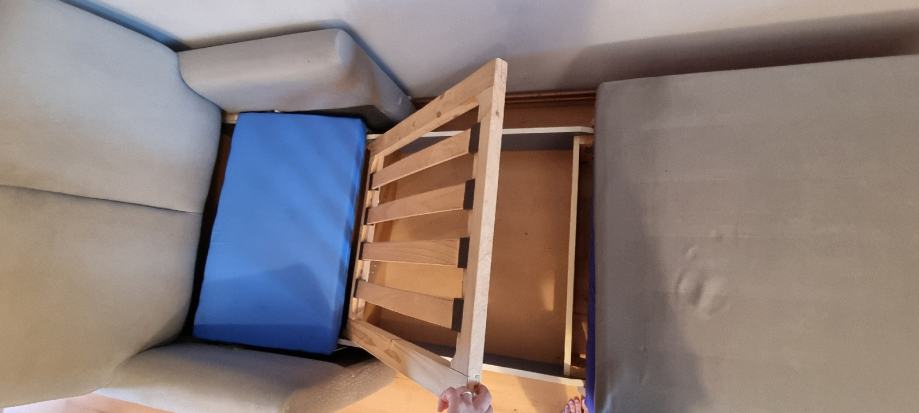 Ocuvana i ima spremiste za deku i jastuk. Dimenzije kadnje sklopnjena 100x85 i kad je rasirena 100x210 visina 86