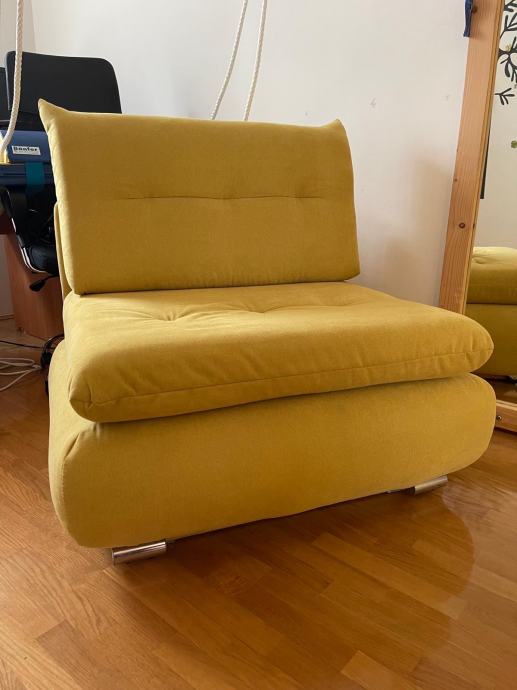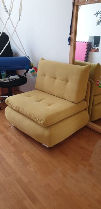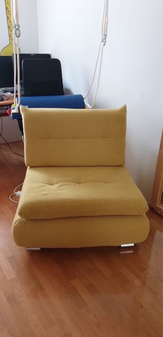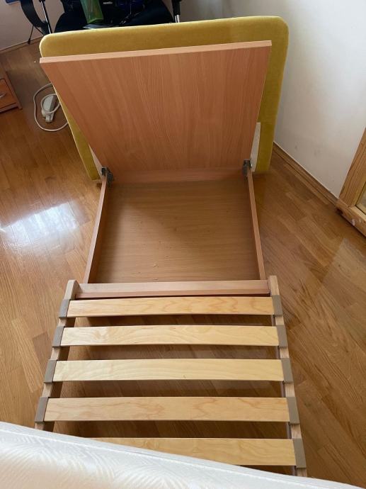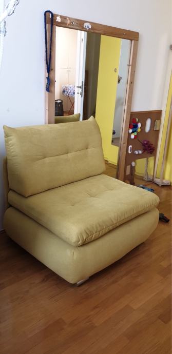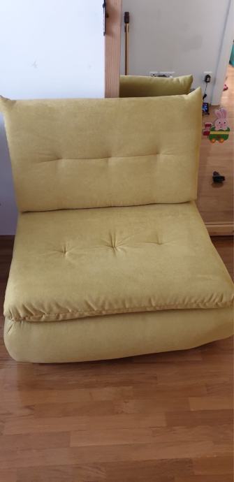 Prodajem fotelju na razvlačenje. Ispod fotelje je sanduk za stvari. Ima drvenu podnicu tako danje spavanje ugodno. Razvlači se u krevet 94x200.