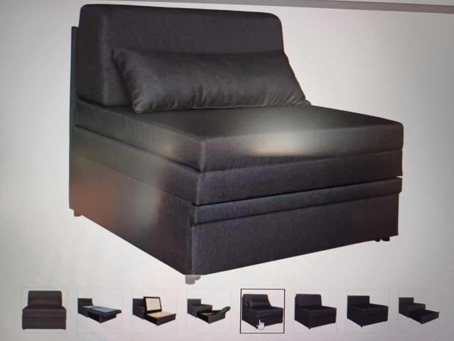 FOTELJA NA RAZVLAČENJE S OPCIJOM SPAVANJA I SPREMNIKOM ZA POSTELJINU