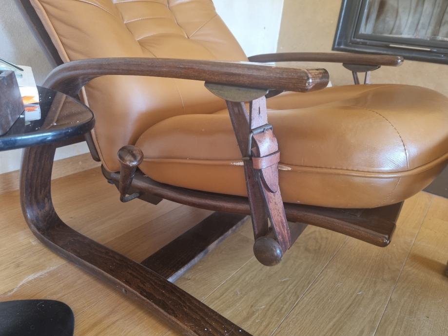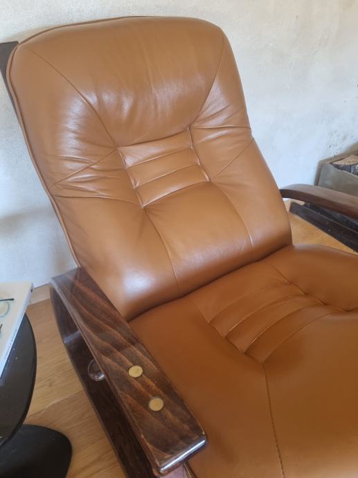Prodajem fotelju potpuno obnovljenu sa novim spužvama i novom kožom. Fotelja ima konstrukciju koju niti Kinezi nisu uspjeli prekopirati. Fotelja ima 45 godina i koštala je tada malo bogatstvo. Rekao bi moj tapetar.....ne daj to za " đaba ". Imam dvije iste fotelje i ja moju nebi nikada prodao. Ova je od punice.