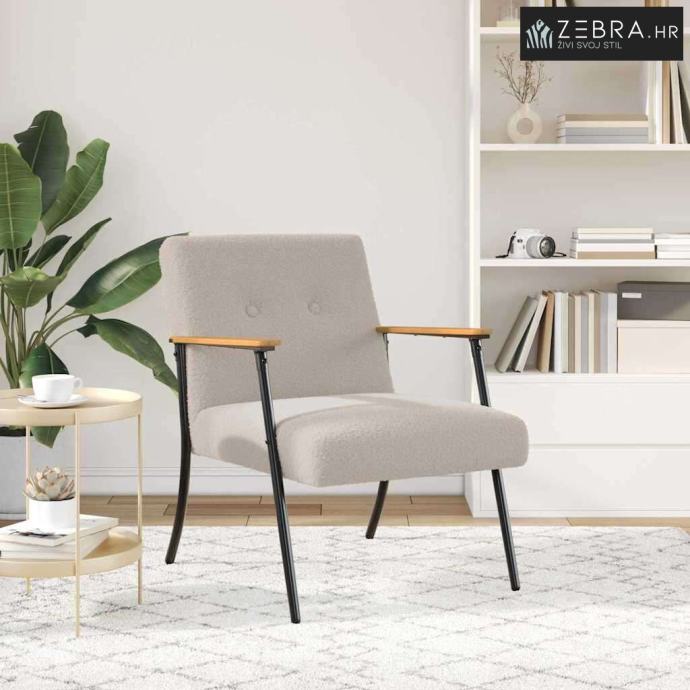 Baršunasti materijal: Fotelja ima ugodnu teksturu koja izgleda kao vunasta tkanina, dodajući luksuz i udobnost.