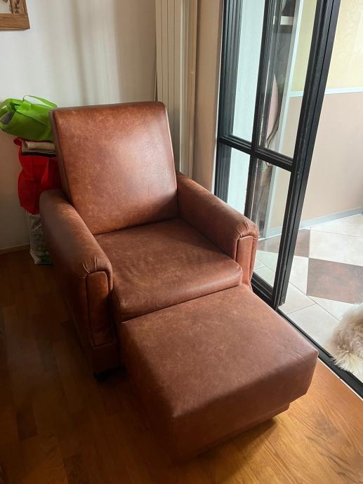 Prodajemo fotelju i tabure, ko novo. Stavljena nova spužva i tapecirung prije godinu dana. Prodajemo samo zato jer nam je viška namještaj.