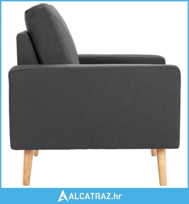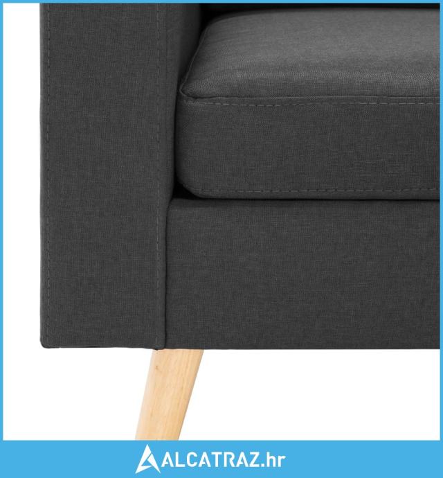Ova sofa presvučena je tkaninom koja je meka na dodir i sadrži gusto podstavljene jastuke, nudeći udoban prostor za opuštanje. Drveni okvir pruža potporu i stabilnost cijeloj konstrukciji.