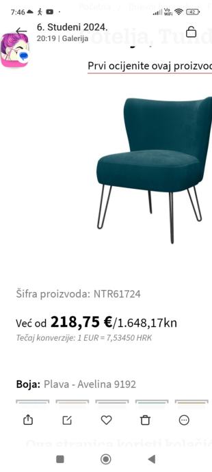 prodajem fotelje Tundra boja avelina kupljene u PRIMI.Fotelje su samo raspakovane, Prodajem jer smo se odlučili na drugačije uređenje pa su nam višak.Imam dva komada fotelja .Cijena po komadu 130,00 eura