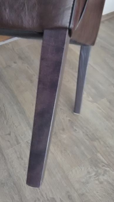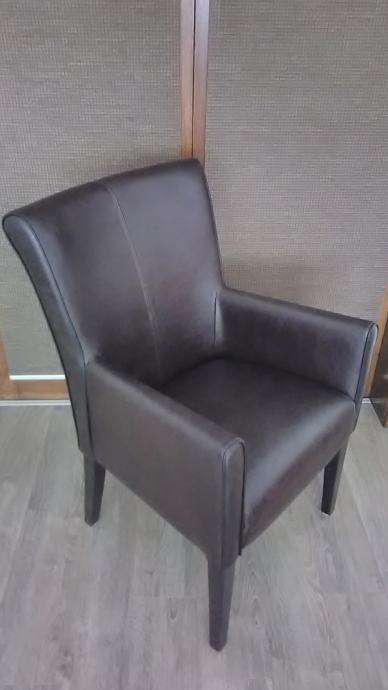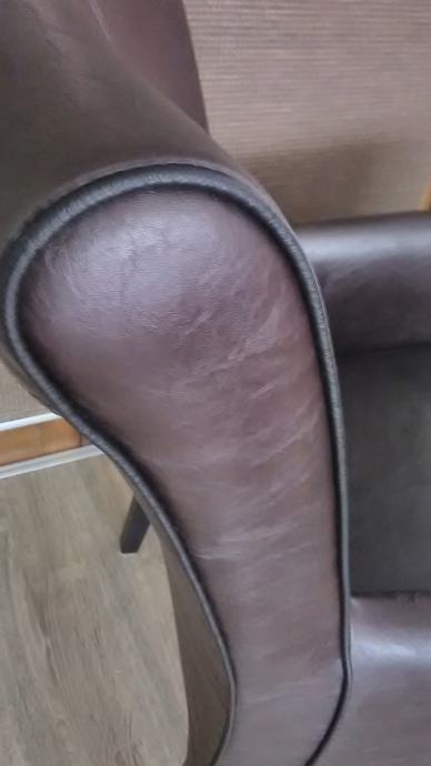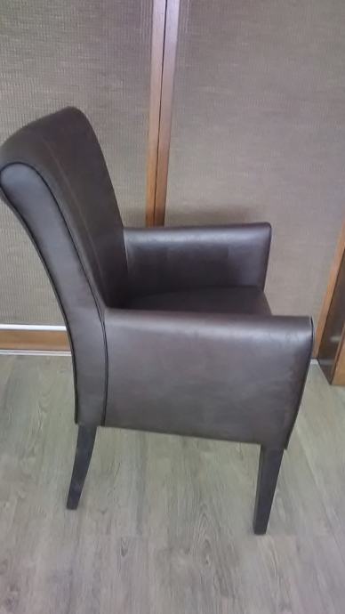 ČETIRI STOLAC-FOTELJE IZRAĐENE OD VISOKO-KVALITETNE EKO-KOŽE, VRHUNSKE ZAVRŠNE OBRADE, U TAMNO-SMEĐOJ BOJI SA SITNIM UZORKOM (VIDI SLIKE!) U POTPUNOSTI NEOŠTEĆNE I VRLO RIJETKO KORIŠTENE (VIŠE SU BILE UKRASNI ELEMENT I UGLAVNOM SU SAMO POPUNJAVALE PROSTOR OKO STOLA). PRODAJU SE ZBOG PREUREĐENJA PROSTORA.