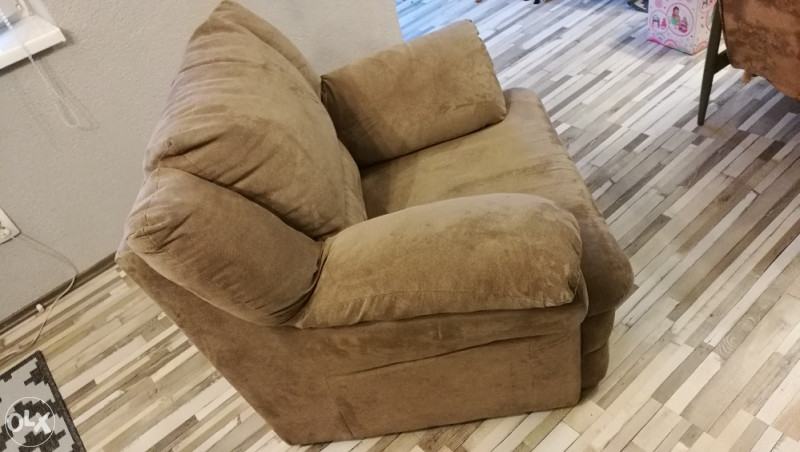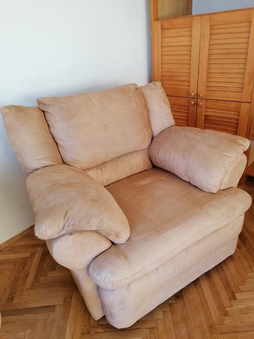 Fotelje dimenzije 110 dužine x 90 širine x 90 visine, tkanina slična microfibri, proizvođača Malagić, malo korištene, sačuvane i dubinski očišćene. 2 komada, jedna bež boje, druga svijetlo smeđe boje. Nema ležaja (samo fotelja). Zajedno ili pojedinačno, za 70,00 eura/komad prodajem.