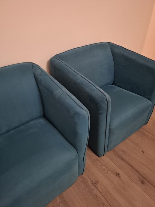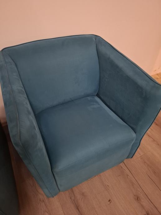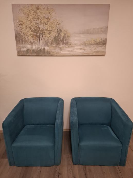Dvije fotelje tirkizno plave boje koristene ali ocuvane,oprane i bez tragova ostecenja.